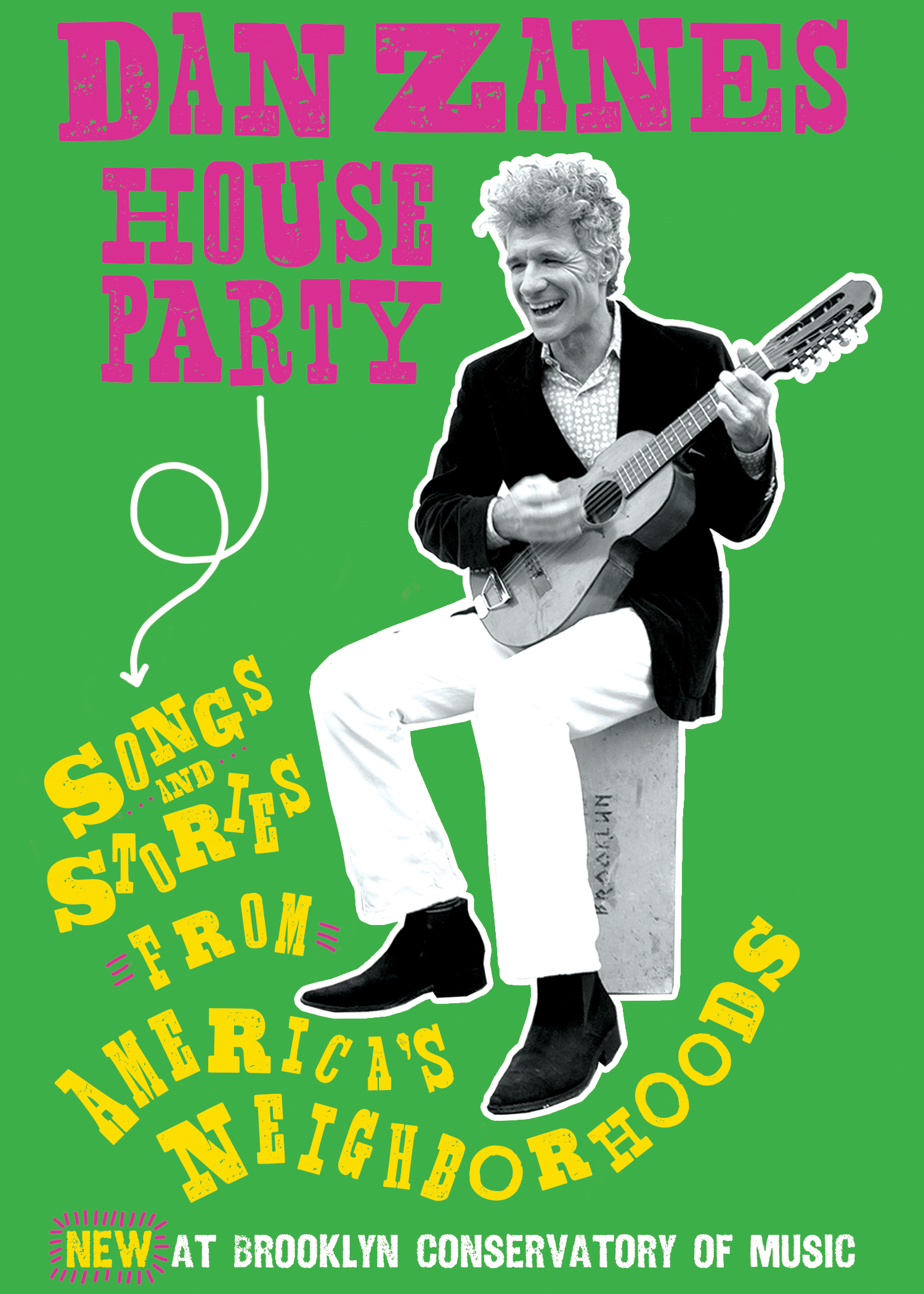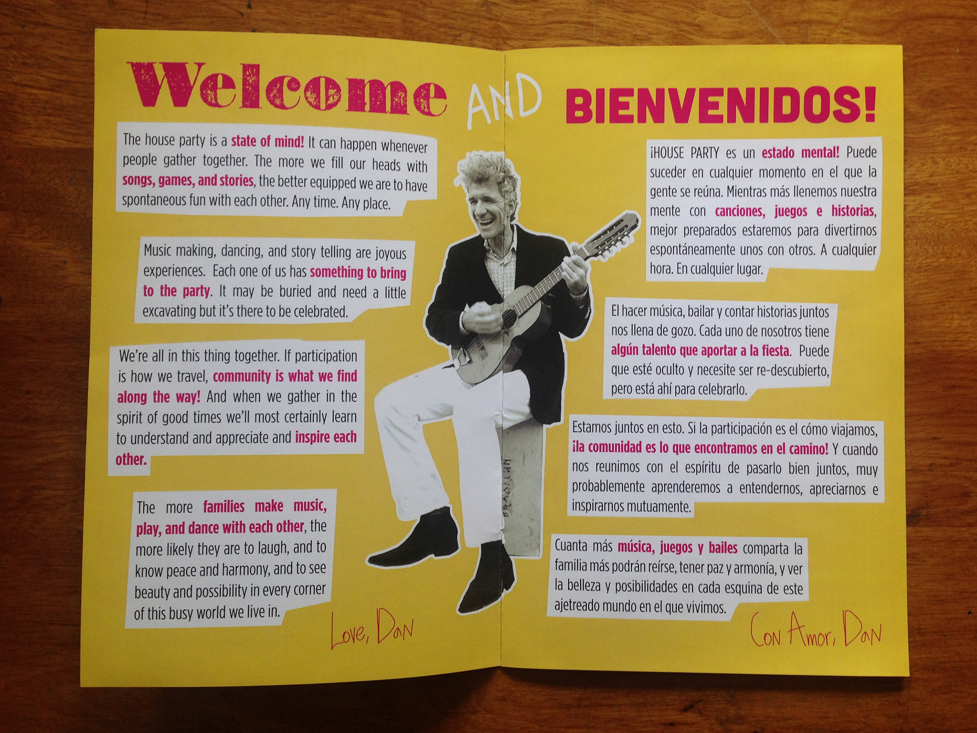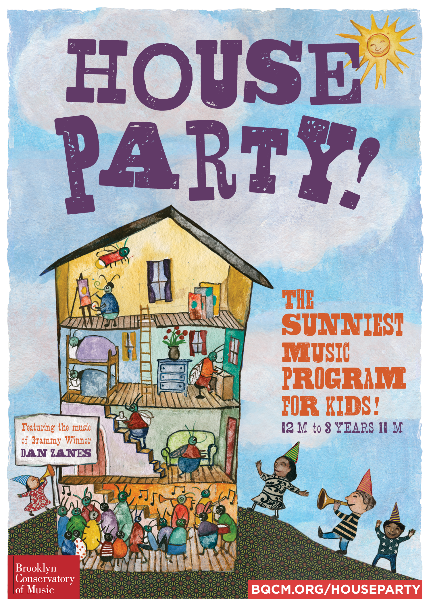 Branding for Dan Zanes House Party Educational Music Program for the Brooklyn Conservatory of Music. Illustrations by Donald Saaf.